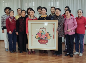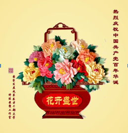 在全党开展党史学习教育之际,作为国家发展改革委老干部大学庆祝中国共产党百年华诞“五个一”系列活动之一,大型手工献礼作品“花开盛世”已于近日制作完成。栩栩如生的牡丹花,大气庄重的花篮,刚柔相济的文字,古朴雅拙的印章,每一个看到的人都夸赞作品精美。这幅通过绮练嵌塑特有表现形式创作出来的作品,既是老同志们对美好生活的表达,更是为建党百年献上的衷心祝福。花篮上盛开的牡丹象征祖国繁荣昌盛,10朵象征中国共产党成立100周年。