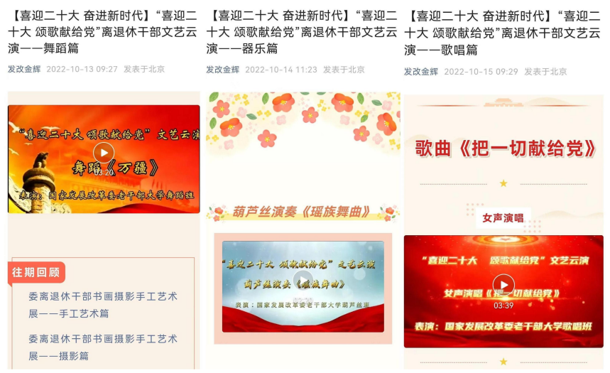 为迎接党的二十大胜利召开,激励广大离退休干部为党和人民事业增添正能量,近日,我局举办了“喜迎二十大 颂歌献给党”离退休干部文艺云演。