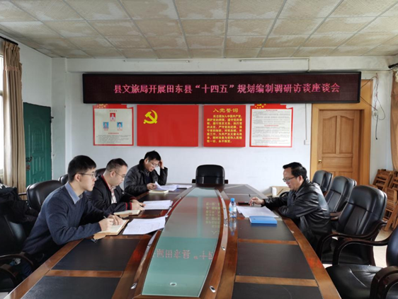 为贯彻落实习近平总书记关于“十四五”规划开门问策、集思广益、问计于民的重要指示精神,进一步加强对田东县的智力帮扶力度,高质量编制好田东县“十四五”规划,国家发改委派驻田东县挂职干部带队赴县财政局、住建局、文旅局等6部门开展县“十四五”规划编制调研,与各部门就“十三五”期间发展成就和短板、“十四五”乃至未来15年发展思路和建议等内容进行一对一面谈,听取意见和建议。