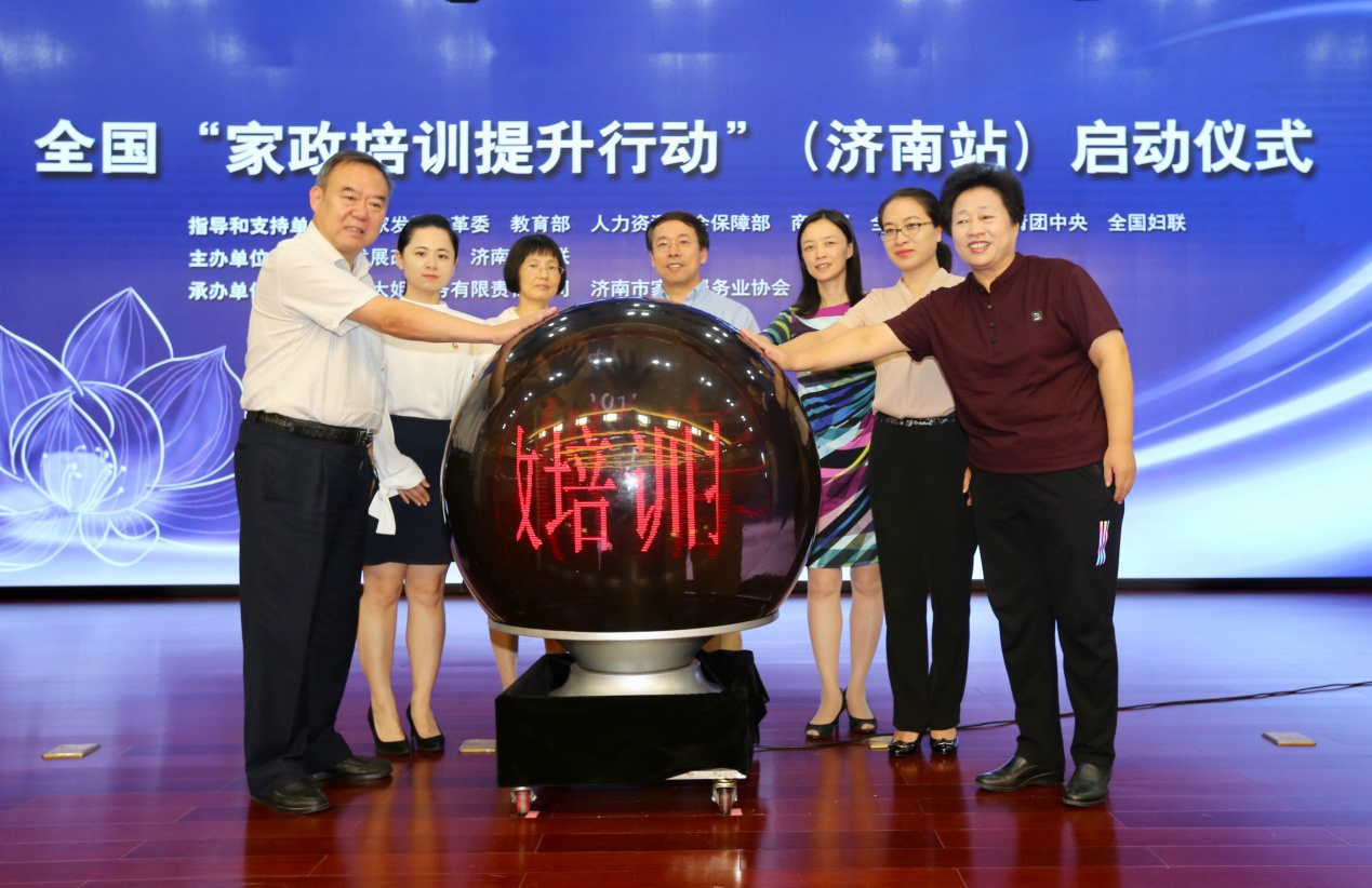 9月4日上午,全国“家政培训提升行动”济南站在济南阳光大姐大厦正式启动。国家发展改革委、教育部、全国总工会、共青团中央、全国妇联等部门,济南市政府以及12省市发展改革部门、家政企业代表和员工参加了活动。