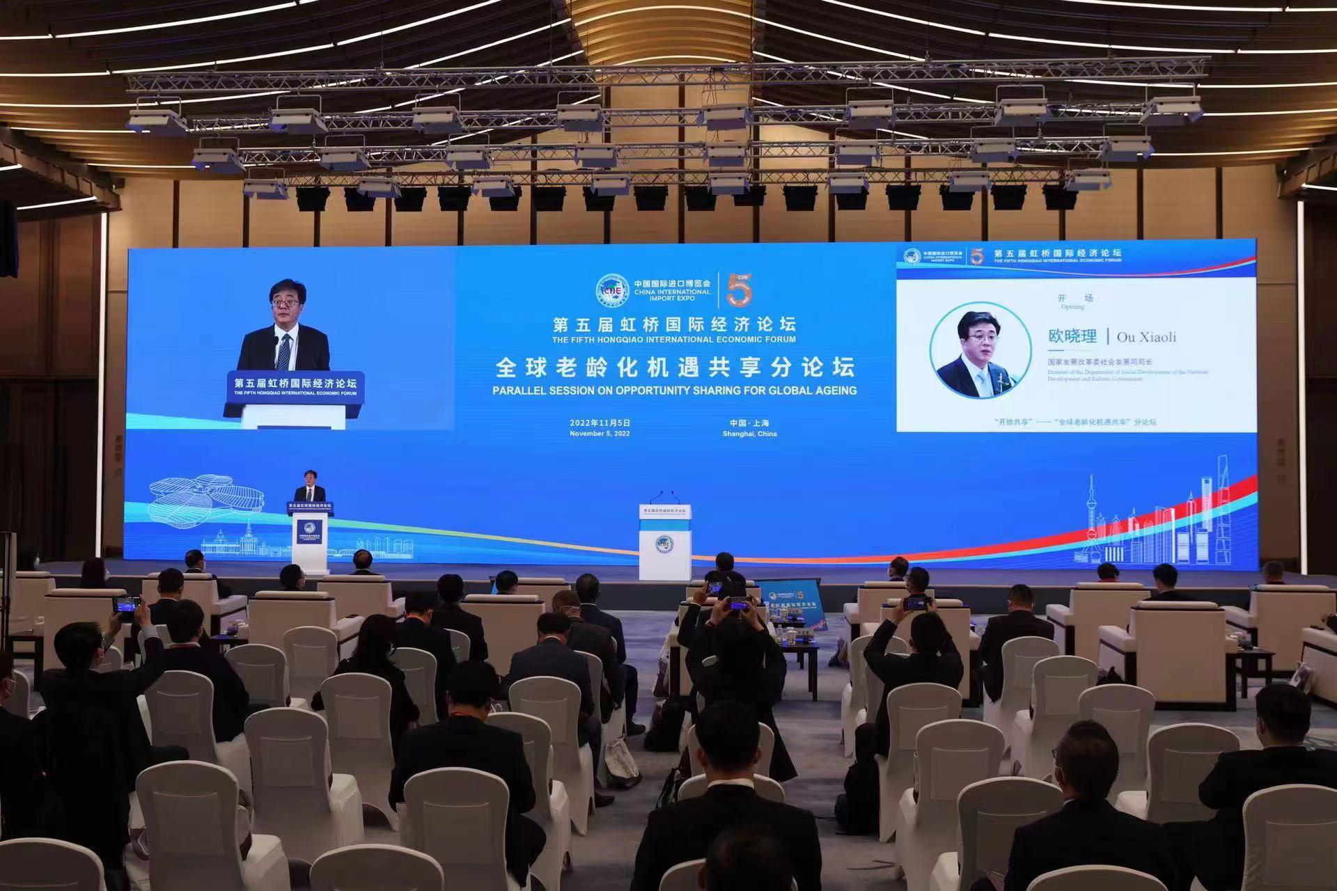 11月5日,由国家发展改革委、商务部和联合国人口基金共同主办的第五届虹桥国际经济论坛“全球老龄化机遇共享”分论坛在国家会展中心(上海)举行。现场来自政企学研界的嘉宾齐聚一堂,共商应对人口老龄化的国际经验、发展银发经济的有效路径以及加强国际合作的契合点,为全球积极应对人口老龄化、共享银发经济发展机遇贡献“虹桥智慧”。