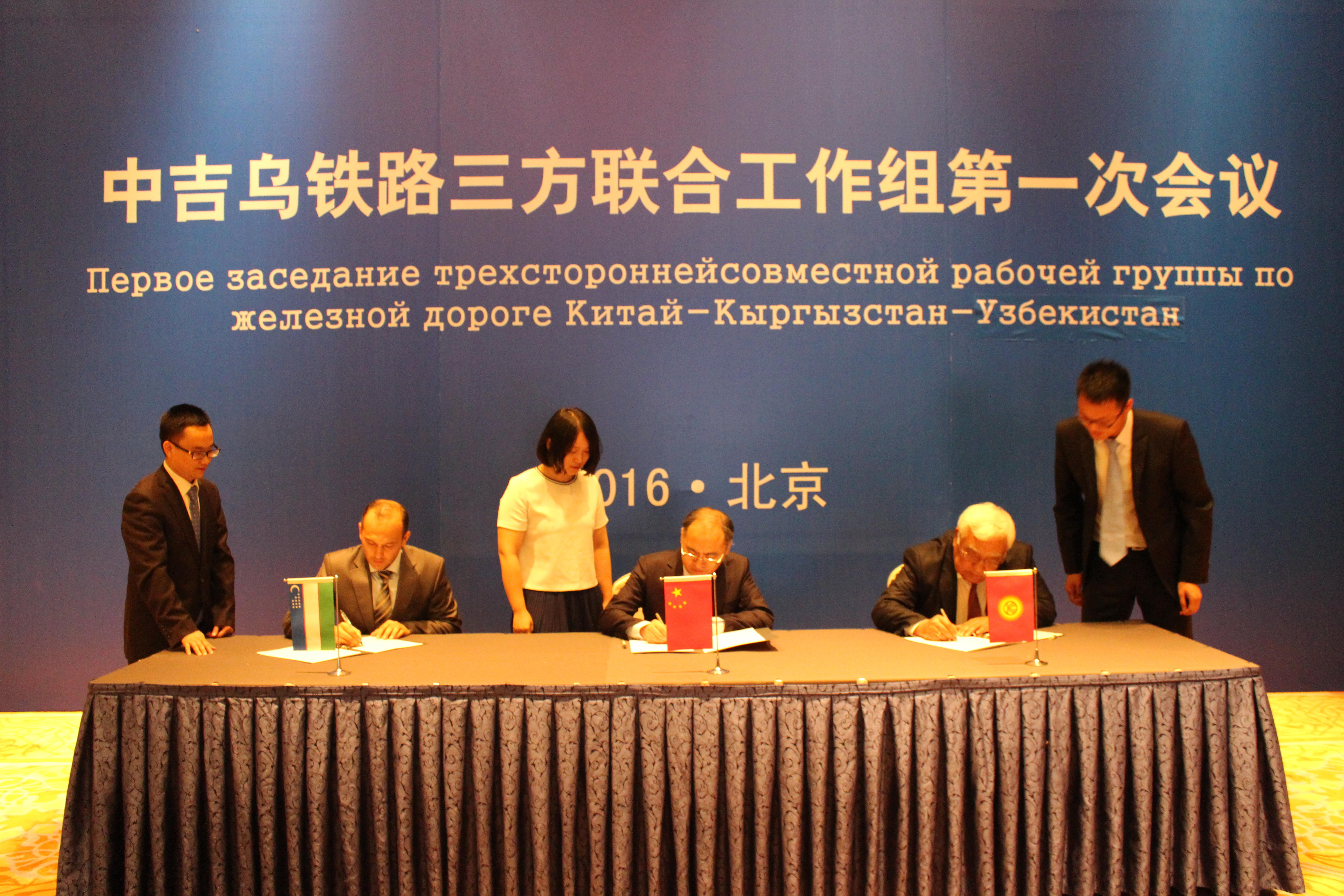 日,中吉乌三方在京召开中吉乌铁路三方联合工作组第一次会议。三方工作组分别由中国国家发展和改革委员会外资司郑持平副司长、吉尔吉斯斯坦国家铁路公司诺戈伊巴耶夫总经理、乌兹别克斯坦对外经济贸易与投资部交通司穆米诺夫司长率领。三方共同就联合工作组工作范围、中吉乌铁路线路走向和轨距标准、下一步工作计划等深入交换了意见,并签署了会议纪要。我委外资司、基础司、国际司,以及商务部、国家铁路局、中铁总和铁一院等单位有关同志参加了会议。