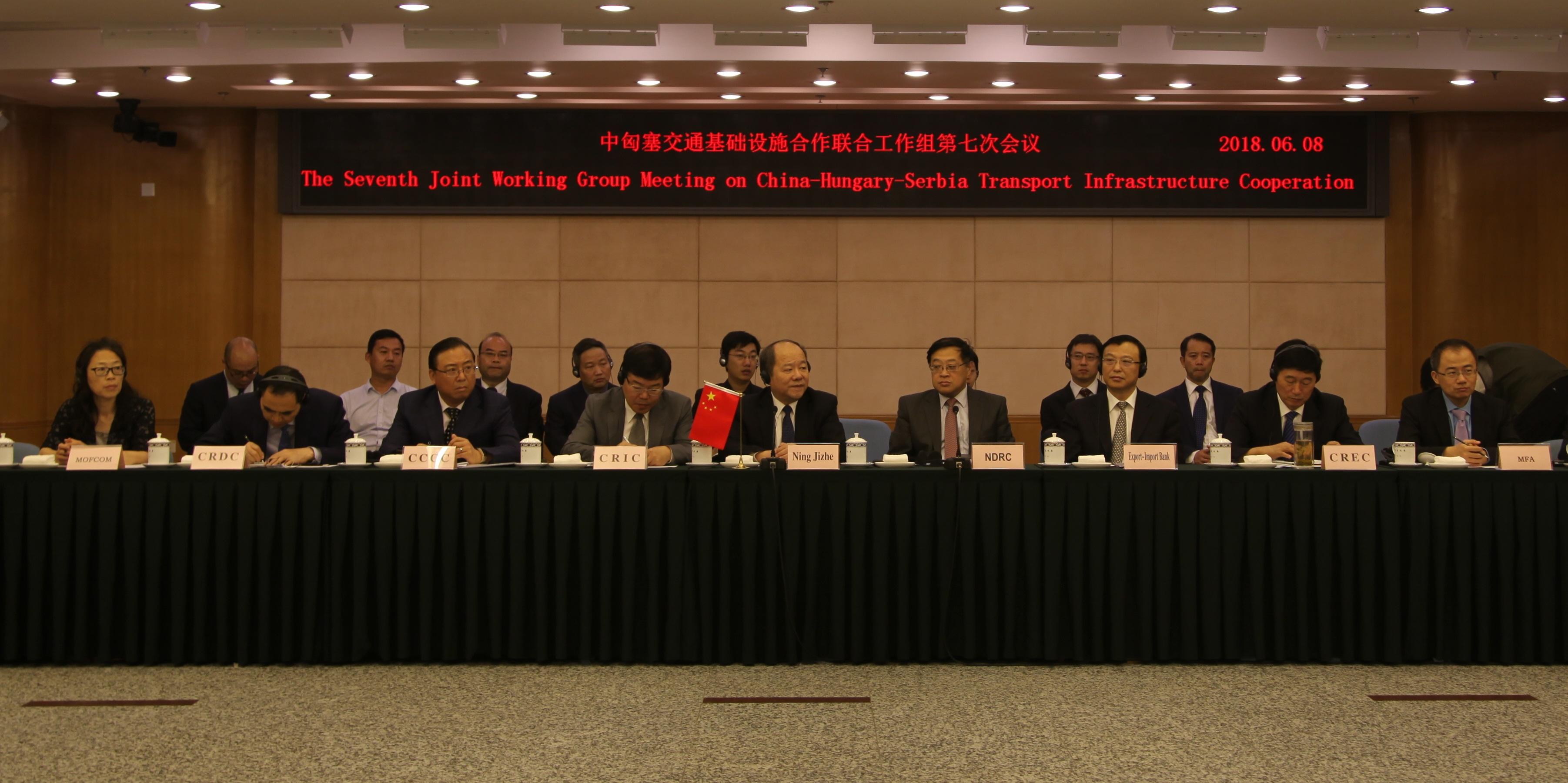 2018年6月8日,中匈塞交通基础设施合作联合工作组第七次会议在北京召开。国家发展改革委副主任宁吉喆、匈牙利外交与对外经济部部长西雅尔多、塞尔维亚建筑交通和基础设施部国务秘书科恩共同主持会议。中匈塞三方就匈塞铁路项目一年来的工作进行了回顾和总结,对项目取得的重要阶段性进展表示满意,并重点研究部署了下一阶段主要工作。会前,宁吉喆副主任分别与匈方和塞方代表团举行了双边会谈。