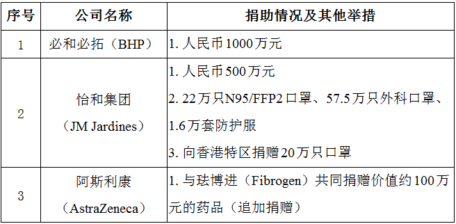 2月17日以来,英国企业新增捐赠情况如下: