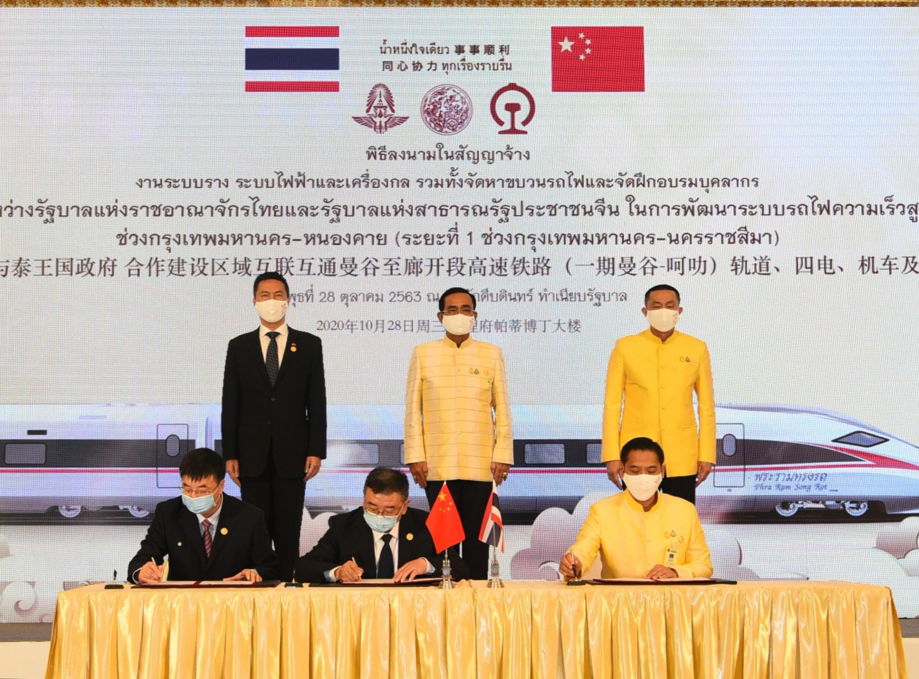 10月28日,在泰国巴育总理见证下,中泰双方在泰国曼谷签署了中泰铁路合作项目一期(曼谷—呵叻段)线上工程合同。