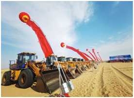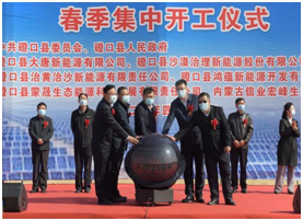 4月16日上午,巴彦淖尔市磴口县黄河流域光伏+沙产业协同发展创新示范基地春季集中开工大会在磴口工业园区举行。