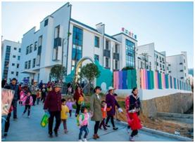 图为桂东县沙田镇周江安置点配套的幼儿园 图为桂东县沙田镇周江安置点内的村级服务中心