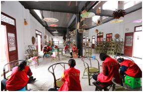 图为叙永县江门镇古寨社区扶贫车间技能培训 图为青川县搬迁群众在合作社拿到第一笔红利