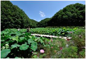 图为朝天区罗圈岩村安置点配套的300亩荷花观赏区 图为达川区陈家乡大田坝村安置点配套的生态微田园