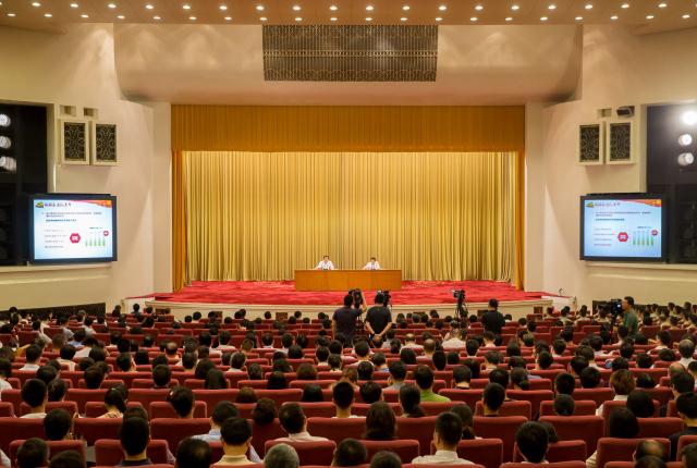 报告会由中央宣传部副部长、国务院新闻办公室主任蒋建国主持。在京党政军机关、中央企业等各界干部群众和高校师生约800人参加了报告会。