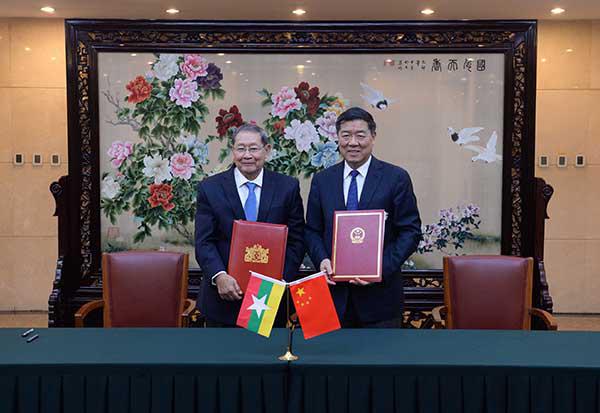 9月9日下午,何立峰主任和缅甸计划与财政部部长吴梭温分别代表两国政府签署了《中华人民共和国政府与缅甸联邦共和国政府关于共建中缅经济走廊的谅解备忘录》。签约前,何立峰主任与吴梭温部长就落实两国领导人共识、推动中缅经济走廊建设进行了简短交流。