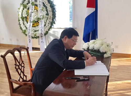 2016年12月3日上午,胡祖才副主任代表我委前往古巴驻华使馆吊唁古巴革命领袖菲德尔·卡斯特罗同志逝世。