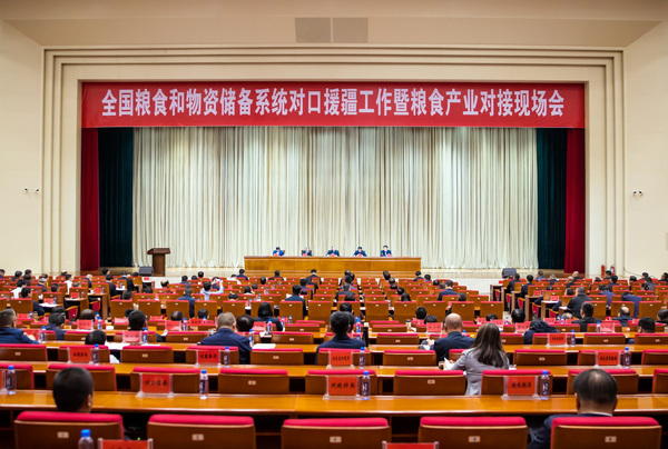会议指出,要学深悟透习近平总书记关于新疆工作的重要讲话精神,充分认识做好对口援疆工作的重大意义。做好对口援疆工作,是落实党中央关于新时代新疆工作战略部署的重要政治任务,是发挥新疆优势构建新发展格局的战略要求,是立足新疆实际保障国家粮食安全的现实需要,是紧贴民生推动高质量发展的有效途径。第三次中央新疆工作座谈会以来,全国粮食和物资储备系统认真贯彻落实党中央关于做好对口援疆工作的决策部署,聚焦新疆工作总目标,支持新疆完善相关政策措施,推动新疆加强相关基础设施建设,汇聚行业力量促进新疆发展壮大优质特色粮食产业,粮食和物资储备援疆工作取得显著成效。