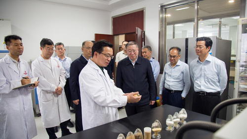 在国家局科学研究院,刘焕鑫一行先后来到国贸东孚公司、粮食质量安全研究所、粮食品质营养研究所和粮油加工研究所、粮食储运研究所,察看扦检一体化、粮食快检、应急加工、粮油资源转化利用等产品装备研发情况,了解技术创新进展,听取科研人员意见。