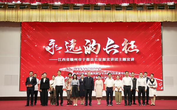 宣讲团成员采用现场讲述、情景演绎、诗歌朗诵等方式,先后深情讲述了《总书记的嘱托》、《扛着发电机长征》、《最后的家书》等故事,生动诠释了伟大长征精神的深刻内涵和时代价值,真情回顾了中央苏区人民倾情奉献的感人场景,全面展现了新时代赣南儿女感恩奋进的火热实践。