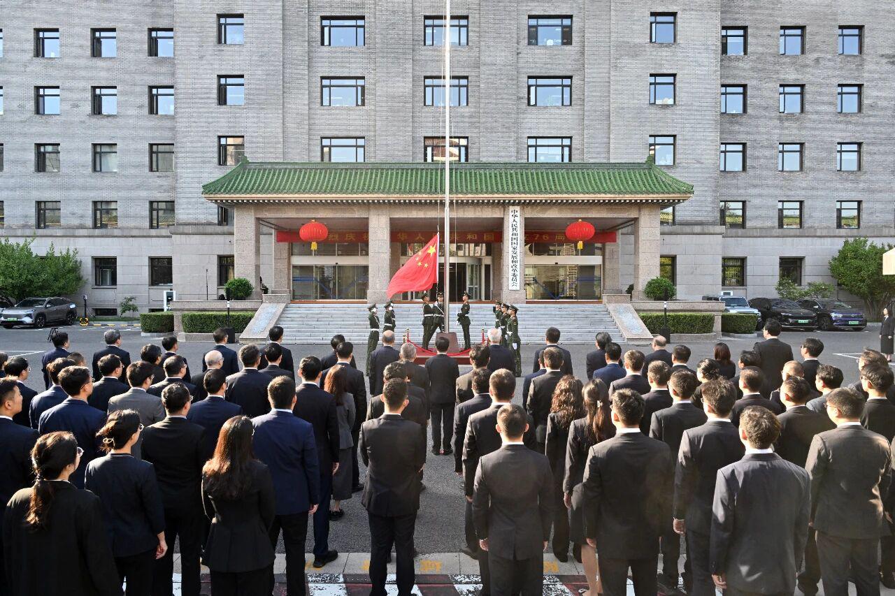 9月30日上午,国家发展改革委举行升国旗仪式,庆祝中华人民共和国成立76周年。委党组书记、主任郑栅洁,在委的委党组成员,秘书长、副秘书长出席仪式。