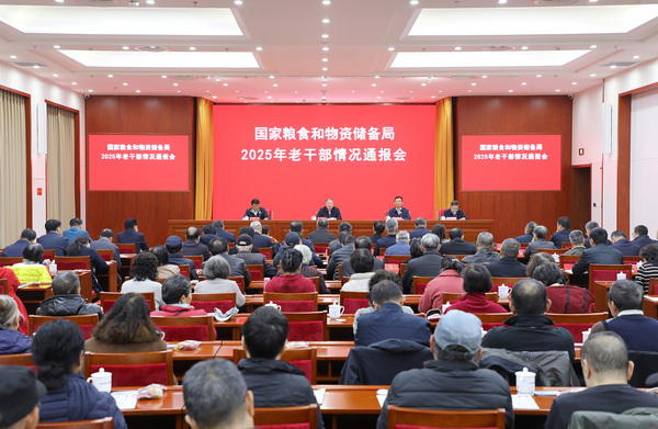 为深入学习宣传贯彻党的二十届四中全会精神,认真落实老干部政治待遇,10月29日,国家粮食和物资储备局召开2025年老干部情况通报会。国家发展改革委党组成员,国家粮食和物资储备局党组书记、局长刘焕鑫出席会议并讲话。国家粮食和物资储备局党组成员、副局长秦玉云、王宏出席,党组成员、副局长陈军生主持。聂振邦,曾丽瑛、赵中权、卢景波、韩卫江、贾骞、刘小南等老领导和老干部代表90余人参加通报会。
