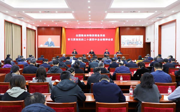 会议指出,党的二十届四中全会是在向第二个百年奋斗目标进军的新征程上举行的一次十分重要的会议。要深入领会全会精神,切实把思想和行动统一到党中央决策部署上来。要深刻领会“十四五”时期我国发展取得的重大成就,从中深刻领悟“两个确立”的决定性意义,以实际行动坚决做到“两个维护”。要深刻领会“十五五”时期在基本实现社会主义现代化进程中具有承前启后的重要地位,抓住时间窗口,巩固拓展优势、破除瓶颈制约、补强短板弱项,坚决守住管好“天下粮仓”和“大国储备”。要深刻领会“十五五”时期我国发展环境面临深刻复杂变化,保持战略定力,增强必胜信心,积极识变应变求变,以粮食和物资储备工作的确定性为经济社会发展提供有力支撑。要深刻领会“十五五”时期经济社会发展的指导方针和主要目标,坚持稳中求进,推动粮食和物资储备事业高质量发展,更好发挥“压舱石”和“稳定器”作用。要深刻领会“十五五”时期经济社会发展的战略任务和重大举措,自觉从服务党和国家事业发展大局出发,把“十五五”粮食和物资储备工作谋划好、推进好。要深刻领会坚持和加强党的全面领导是推进中国式现代化的根本保证,持之以恒推进全面从严治党,不断提高全系统党的建设质量。