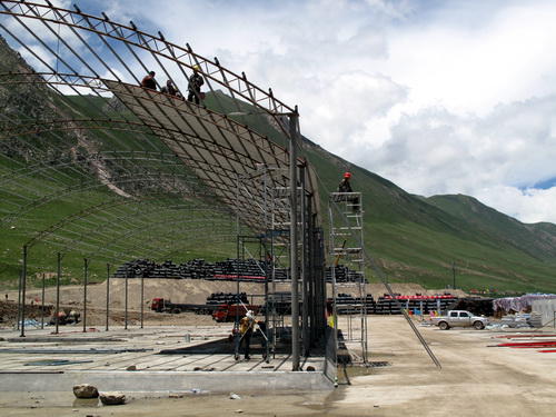 调研组分别与青海省玉树地震灾后重建现场指挥部和北京市、辽宁省、中国建筑工程总公司、中国铁路工程总公司、中国铁道建筑总公司、中国水利水电建设集团等六家对口援建单位进行了座谈,了解6月20日国务院抗震救灾总指挥部玉树地震灾后恢复重建工作会议以来,全面实施灾后恢复重建和对口援建工作的进展情况,并就加快乡镇、村庄控制性详规和民房设计进度,以及施工用材、用水、用电、道路运输、后勤基地等保障问题与省州有关部门交换了意见,认真听取了各援建单位实施准备情况介绍。在结古镇,调研组实地考察了应急燃油电站施工现场、在建的玉树建材物流集散中心、砂石料场和利用新型建材进行民房重建的示范项目,并到中国铁道建筑总公司灾后重建指挥部驻地看望援建人员。