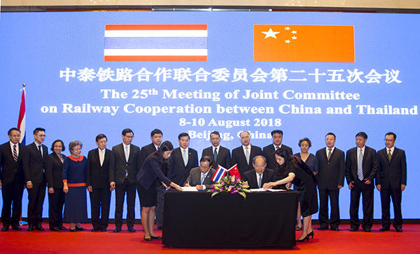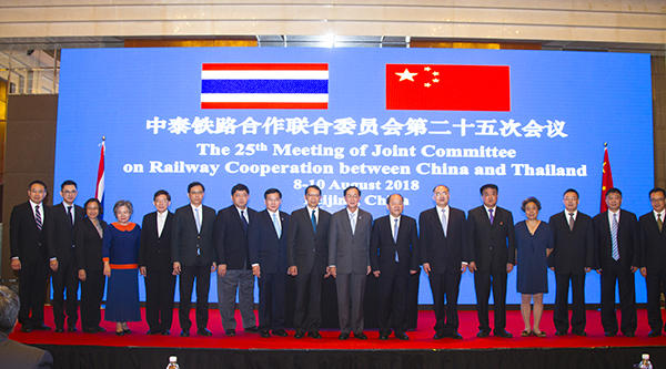 为进一步落实中泰两国领导人关于中泰铁路合作达成的重要共识,2018年8月8-10日,中国国家发展改革委宁吉喆副主任与泰国交通部阿空·登披塔亚派什部长在北京共同主持召开中泰铁路合作联合委员会第25次会议。双方达成多项共识并签署了会议纪要。
