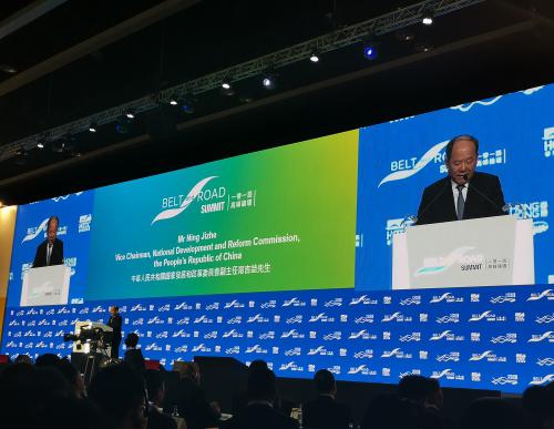 应香港特别行政区行政长官林郑月娥邀请,9月11日,国家发展改革委副主任、推进“一带一路”建设工作领导小组办公室副主任宁吉喆出席第四届香港“一带一路”高峰论坛,在开幕式上发表主旨演讲。