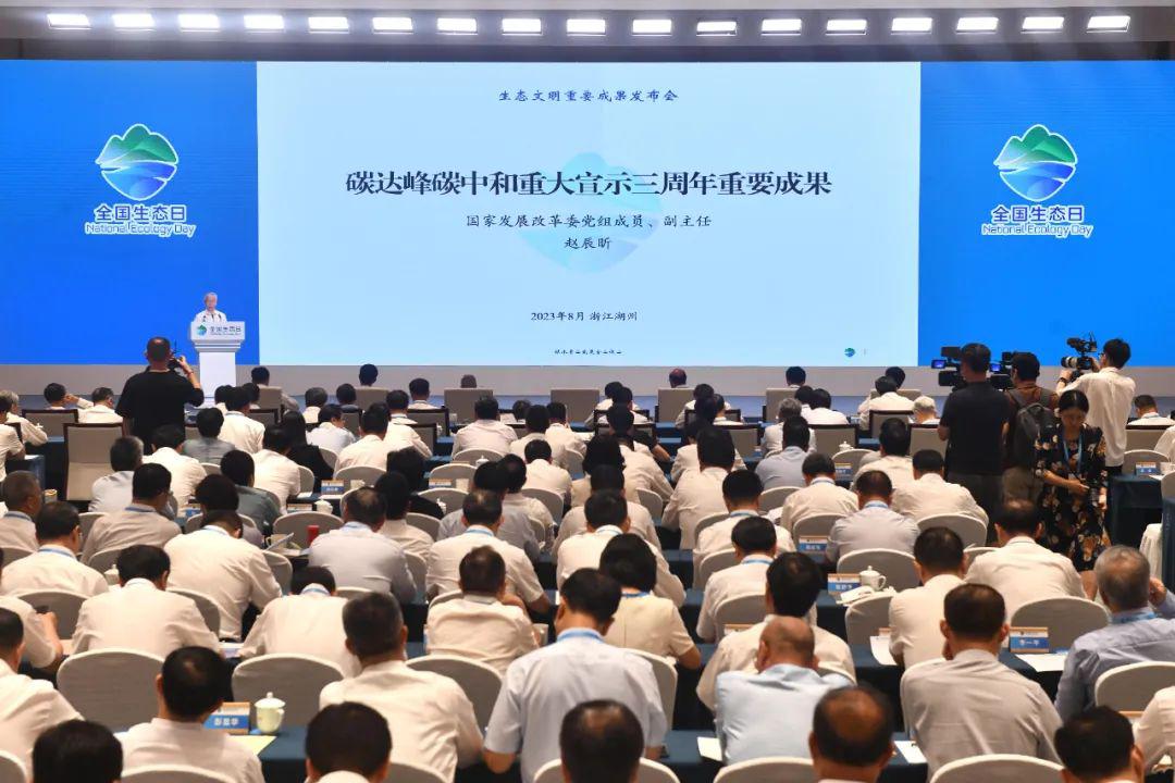 2023年8月15日,首个全国生态日主场活动在浙江省湖州市举行,主题为“绿水青山就是金山银山”。在主场活动上,一个个数据、成果、倡议,扎实展示了新时代我国生态文明建设取得的巨大成效。