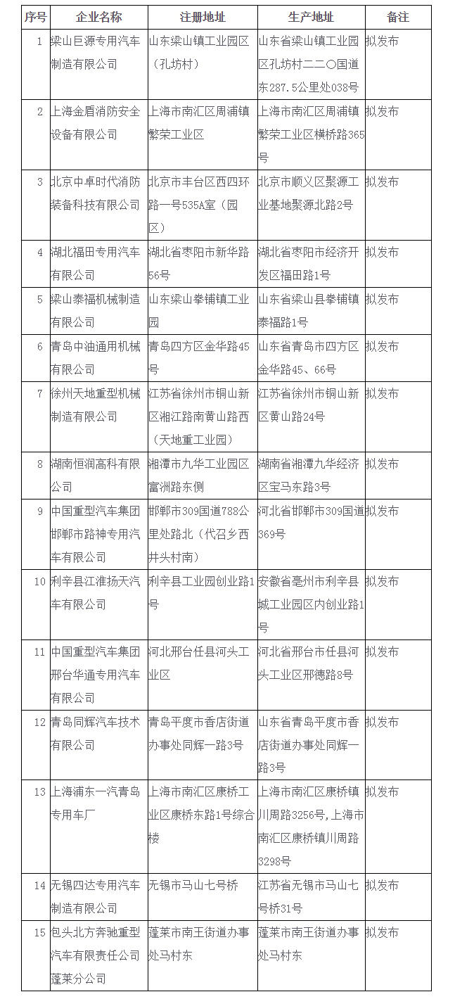 根据行政许可事项和原国家经贸委《关于车辆生产企业及产品目录管理改革有关问题的通知》(国经贸产业[2001]471号)的有关要求,现将《公告》拟发布的新增汽车生产企业予以公示,请社会各界监督,如有异议,请在公示期内与我们联系。公示企业名单如下:
