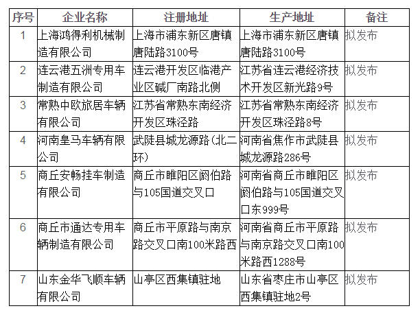 根据行政许可事项和原国家经贸委《关于车辆生产企业及产品目录管理改革有关问题的通知》(国经贸产业[2001]471号)的有关要求,现将《公告》拟发布的新增汽车生产企业予以公示,请社会各界监督,如有异议,请在公示期内与我们联系。公示企业名单如下:
