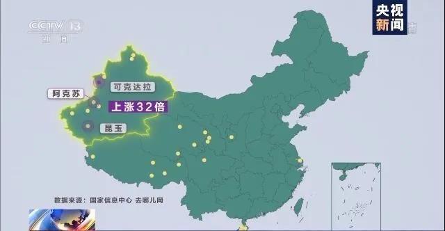 这是同比增长最快的前30个城市,位居榜首的新疆可克达拉,与去年同期相比上涨了32倍,阿克苏、昆玉等悉数上榜,总体看,有三分之一位于新疆。在出行量最集中的“五一”期间,增幅的“人气王”属于新疆的阿克苏。那么,它因何“爆红”?