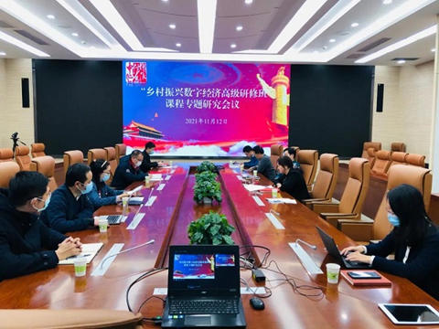 为更好巩固拓展脱贫攻坚与乡村振兴有效衔接,以数字经济助力乡村振兴,在国家发展改革委人事司大力支持下,国家信息中心以“数字经济助力乡村振兴”为主题,成功申报了人力资源和社会保障部“专业技术人才知识更新工程2021年高级研修班”项目。“乡村振兴数字经济高级研修班”培训(以下简称“研修班”)将围绕乡村振兴、网络强国、数字强国等国家重大战略,挖掘、提炼其在基层的应用实践,共学互鉴、启迪思维,力争培养一批具备信息化思维、了解数字经济、奋斗在乡村振兴一线的县乡干部和中高级职称专业技术人才,助力国家级重点帮扶地区“弯道超车”,高质量发展。11月13日,中心定点帮扶领导小组办公室(以下简称“帮扶办”)组织召开研修班课程内容专题研究会议,各部门、公司授课专家参加会议,中心“帮扶办”副主任王莹同志主持会议。