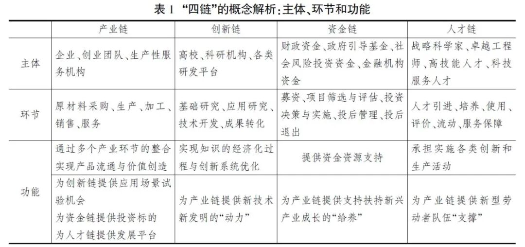 在“四链”融合推动未来产业发展的模式中,产业链是核心,创新链、资金链、人才链均围绕产业链进行部署,“四链”之间相互融合、相互促进。