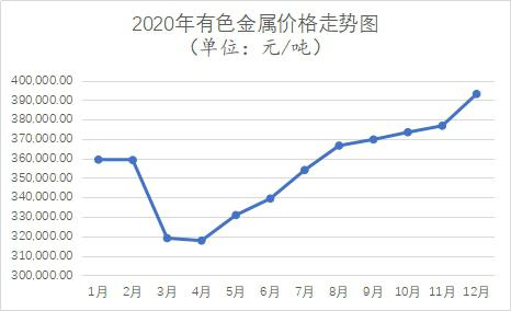 后期价格上涨主要因素是:自二季度开始,有色金属下游赶工期叠加季节性进入开工旺季,基建、房地产、汽车等行业需求趋旺。自4月底开始,有色金属价格涨幅明显,12月份达到了全年价格最高点,平均价格为393168.33元/吨,较全年最低点317774.00元/吨上涨了23.73%。