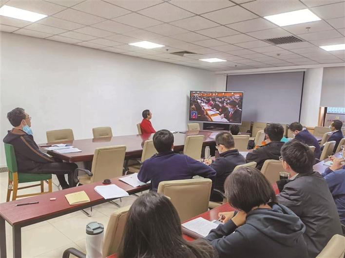 10月16日,国家发展改革委综合司组织党员干部收看党的二十大开幕会。 (国家发展改革委综合司供图)