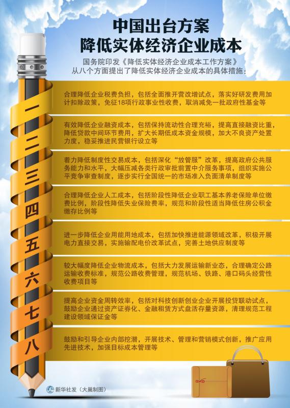 图表:中国出台方案降低实体经济企业成本