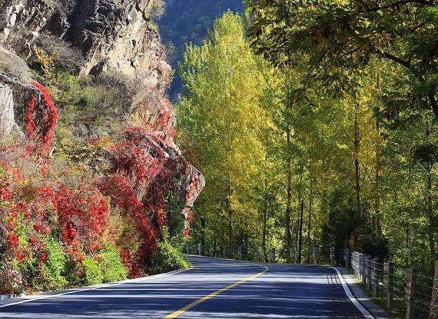 昌赤路被誉为“京郊十大最美公路”之一,四季如画,风景各异。深秋时节,秋色浓艳的盘山公路可谓最美路段,登高俯瞰山间路侧、远山林间,好一幅五彩斑斓的美丽画卷……