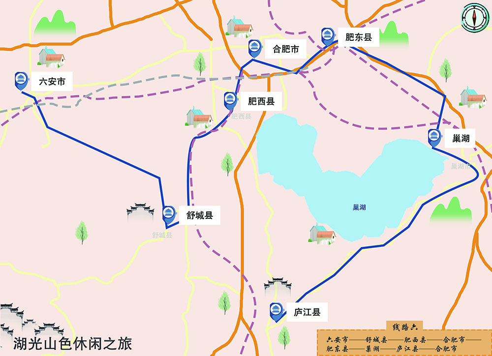 六安市—舒城县—肥西县—合肥市—肥东县—巢湖—庐江县—合肥市