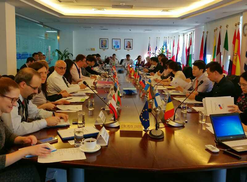 1月23日下午,中欧社会保障改革合作项目第五次咨询委员会会议在欧盟驻华代表团召开。会议由欧盟驻华代表团和中国商务部共同主持,欧盟驻华代表团副大使胡克定先生到会致开幕辞。来自国家发展改革委、财政部、民政部、意大利国家社会保障署、法国国际专业技术署、波兰劳动与社会政策部、西班牙就业移民和社会保障部、捷克劳动社会事务部、罗马尼亚劳动和社会保障部等政府部门及机构的代表,共30余人参加会议。