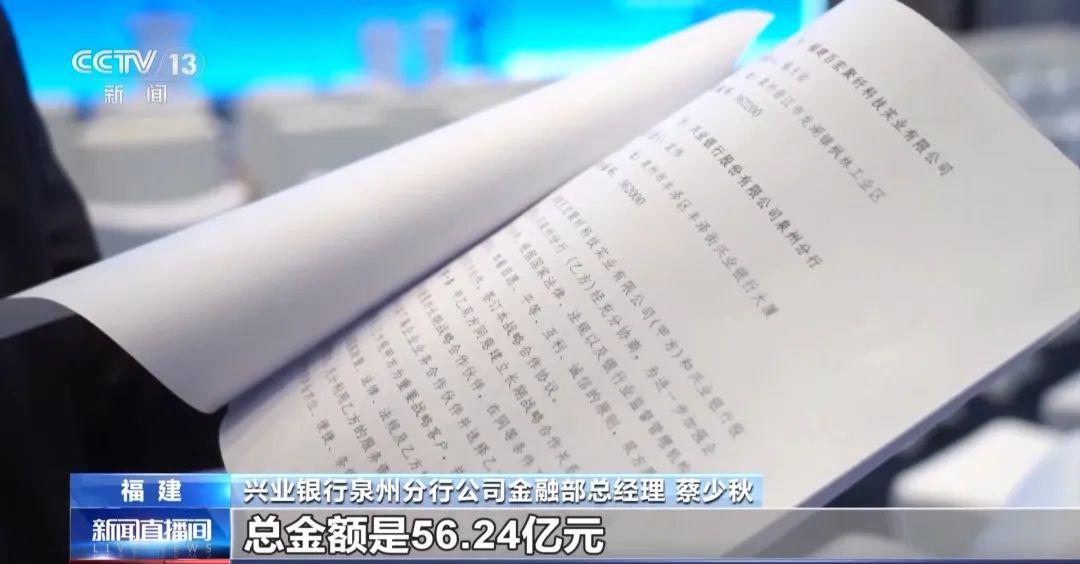 兴业银行泉州分行公司金融部总经理 蔡少秋:总金额是56.24亿元,这个金额就比较有意思了,精确到小数点后两位,以前我们跟民营企业签约都是一个整数,这次是第一次跟民营企业签约金额精确到小数点。以前都是一些框架性的合作,这次的合作都是一些比较明确的项目,更精细、更精确,也希望我们的服务能精确到小数点后两位。