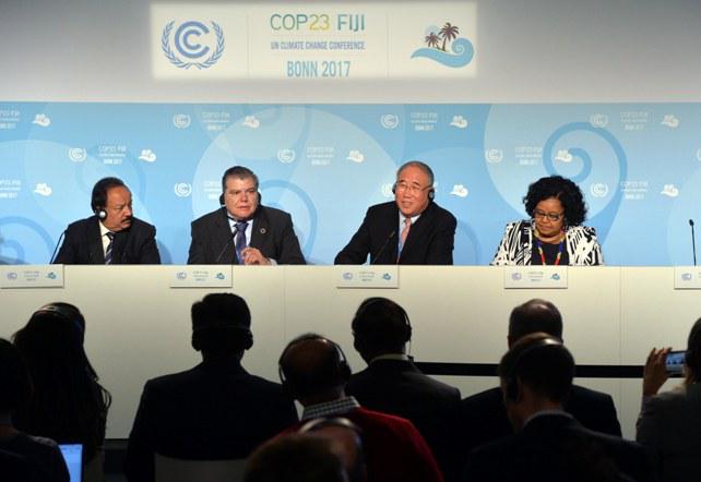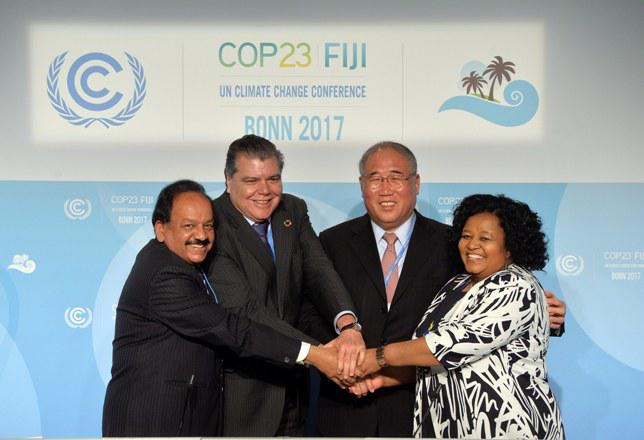 德国当地时间11月15日,基础四国举行新闻发布会,中国气候变化事务特别代表、中国代表团团长解振华,巴西环境部部长何塞·萨尼·菲略,南非环境事务部部长艾德纳·莫莱瓦,印度环境森林与气候变化部部长哈什·瓦尔丹,共同出席发布会,就发展中国家的贡献、中国应对气候变化的努力和成效、2020年前承诺和行动等问题,回答了中外记者提问。境内外媒体100多人参加了发布会。
