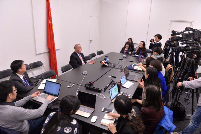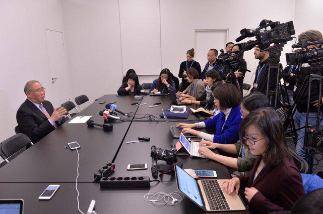 新闻发布会后,中国代表团举行中方媒体见面会,解振华就波恩气候大会进展情况、共同但有区别的责任原则、南南合作、清洁能源国际合作等问题,回答了记者提问。人民日报、新华社、中央电视台等中央主要媒体,财新、凤凰卫视、第一财经等市场化媒体,共20多名记者参加了见面会。