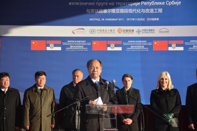 11月28日,匈塞铁路项目塞尔维亚贝尔格莱德至旧帕佐瓦段开工仪式在贝尔格莱德隆重举行。塞尔维亚总理布尔纳比奇、副总理兼交通部长米哈伊洛维奇、中国国家发展改革委副主任王晓涛、中国驻塞尔维亚大使李满长、中塞两国有关部门及建设单位代表参加了仪式。