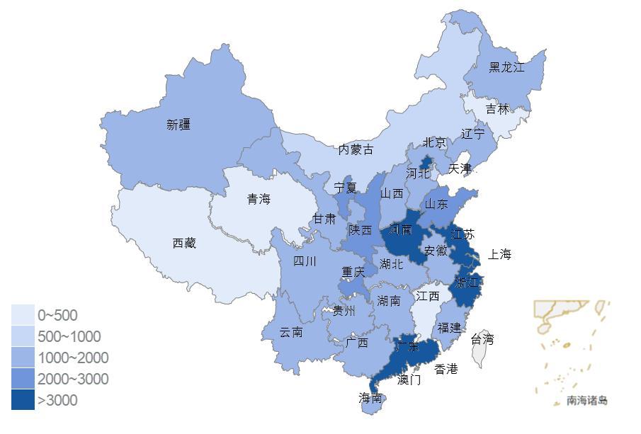 图1:2018年1月全国12358价格监管平台地区受理量分布