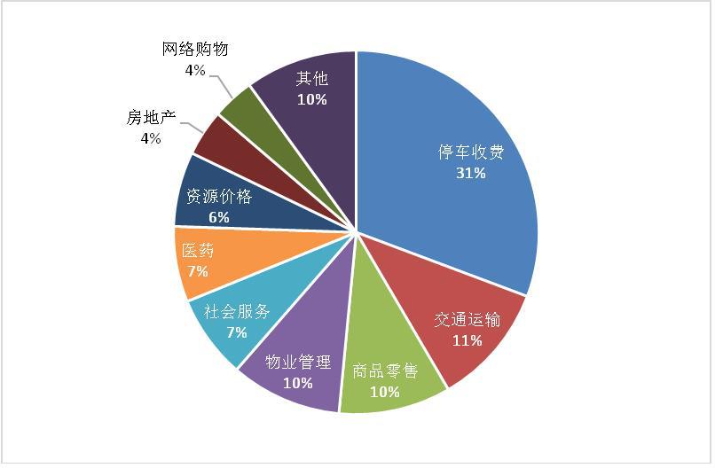 (二)重点地区分布。从地区分布看,1月受理量排名前十的省份依次是北京(4478件)、江苏(4231件)、浙江(4169件)、广东(4107件)、上海(3391件)、河南(3212件)、陕西(2693件)、宁夏(2478件)、山东(2434件)、重庆(2225件)。宁夏回族自治区举报受理量较上月增长近100%,主要原因是近期宁夏回族自治区物价局发布《宁夏回族自治区机动车停放服务收费管理办法》,咨询量增幅较大。