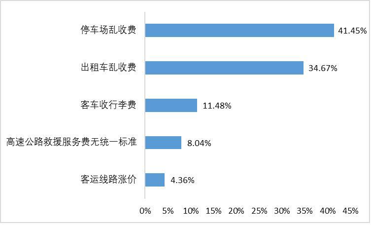 交通方面,反馈最多的是停车场乱收费问题,有市民反映元旦期间部分停车场、出租车乱收费。此外,客车加收行李费、高速公路救援服务费无统一标准、客运线路涨价等也是反映较多的问题。