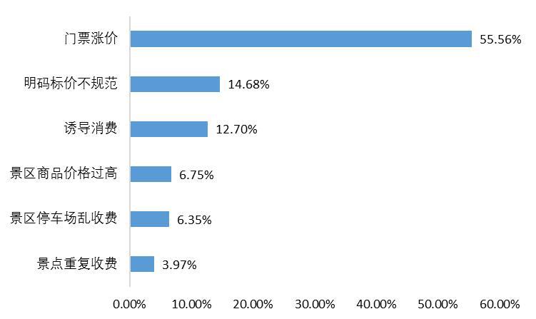 旅游方面,从反映的具体问题来看,最多的是景区门票涨价、景区娱乐项目存在明码标价不规范等问题。其次是诱导消费、景区商品价格过高等问题。