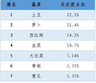 表1:平台和互联网最受群众关注的蔬菜种类