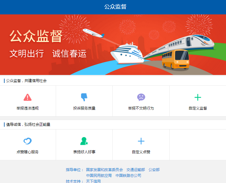 “诚信春运公众监督平台”由国家发展改革委会同公安部、交通运输部、中国民用航空局、中国铁路总公司联合推出,是首次将信用工作和春运工作融合起来的实名举报平台。通过这一平台,除了能够实现在移动端随时随地监督、举报违法违规和不文明行为,还能为优质服务和好人好事点赞。而拥有全网化内容的“一点资讯”,能够调集平台内最有效传播资源,进而拓宽国家发展改革委等部门的“诚信春运公众监督平台”的传播渠道,双方合作能够更加充分地发挥网民舆论监督势能,营造“文明出行、诚信春运”的良好氛围。
