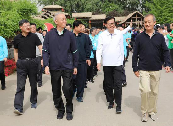 2018年5月5日,北京市委书记蔡奇调研大运河森林公园