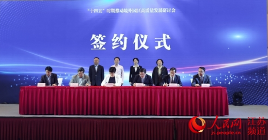 2021年5月12日,由江苏境外园区高质量发展联盟主办的“十四五”时期推动江苏境外园区高质量发展研讨会在南京举行。会上,江苏境外园区高质量发展联盟成员单位联合发布《关于共同推动江苏境外园区高质量发展的倡议书》,江苏境外园区高质量发展联盟与江苏省律师协会、“一带一路”人才培养合作联盟、中信保、中国银行江苏省分行、江苏银行分别签署战略合作协议。