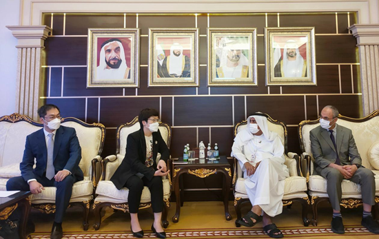 2021年9月21日,中江国际集团副总经理、江苏海投公司董事长郑一敏率队拜访阿联酋大学(UAEU)执行副校长加勒布·阿勒哈德拉米(Ghaleb Alhadrami),探讨利用科创资源推动中阿产能与科技合作。